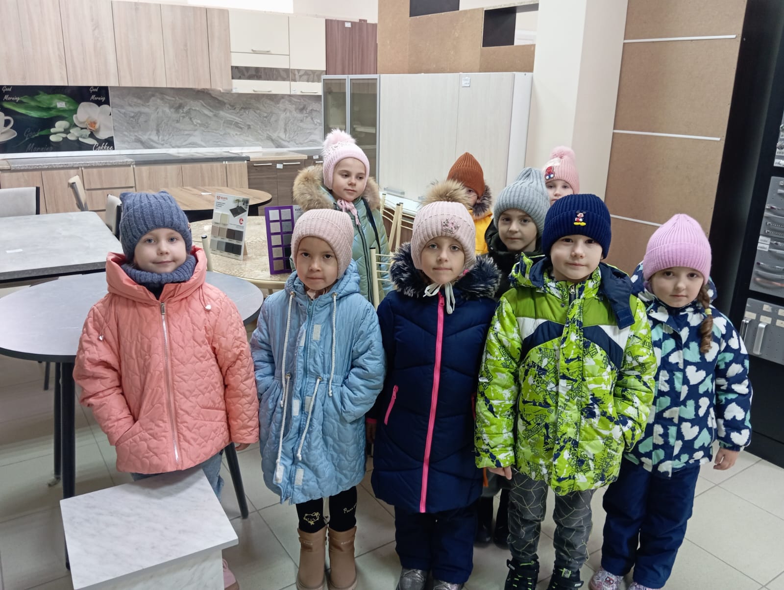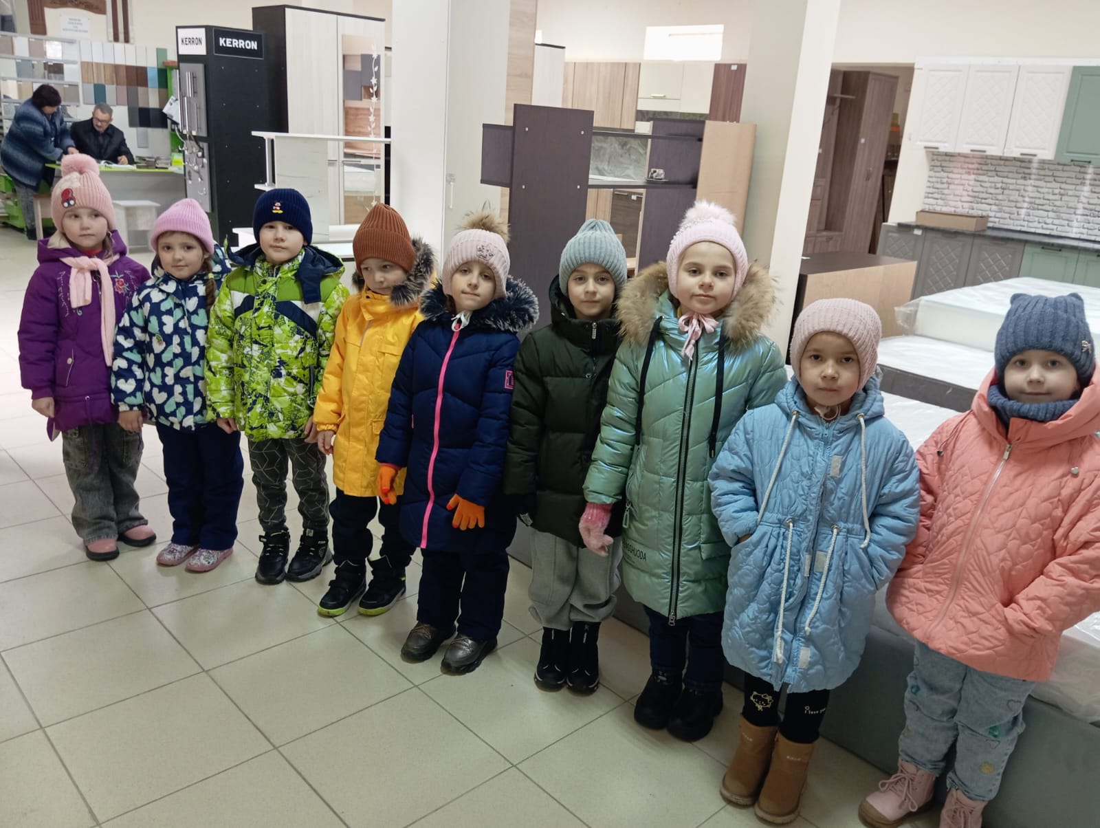 В магазине юных покупателей приветливо встретили. Ребята прошли по всему салону и рассмотрели мебель, предназначенную для детской комнаты, спальни, гостиной, кухни, прихожей, предметы для украшения интерьера дома. Их очень удивило разнообразие диванов и кресел, различных видов столов.