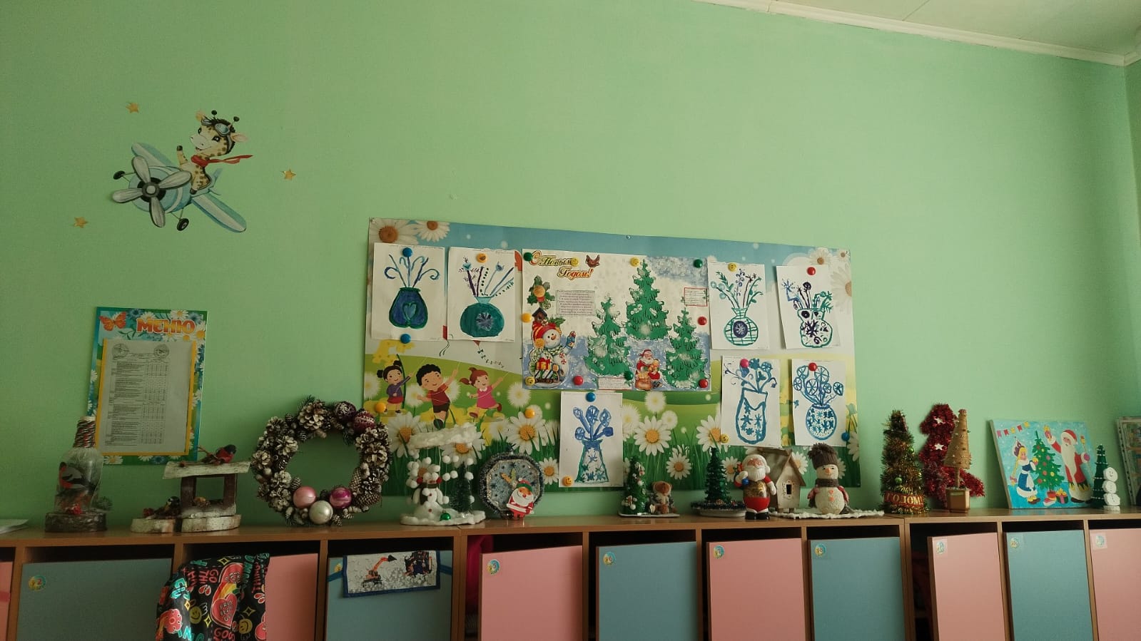 Новогодние и зимние сюжеты семейного творчества украсили фойе детского сада и внесли неповторимый элемент в новогодний интерьер.
