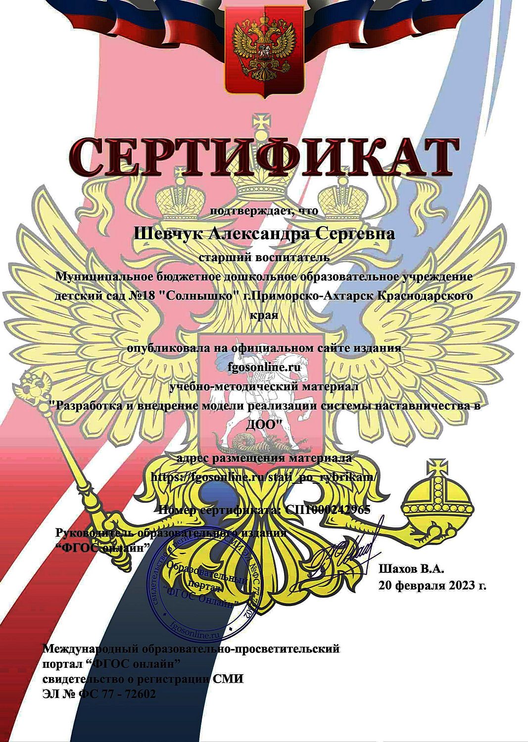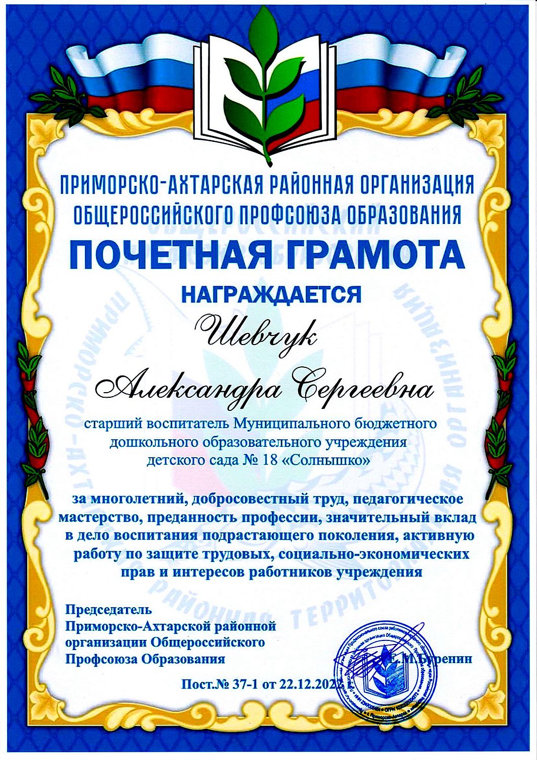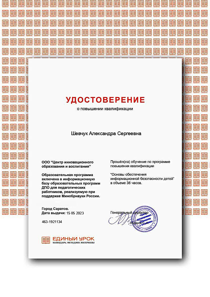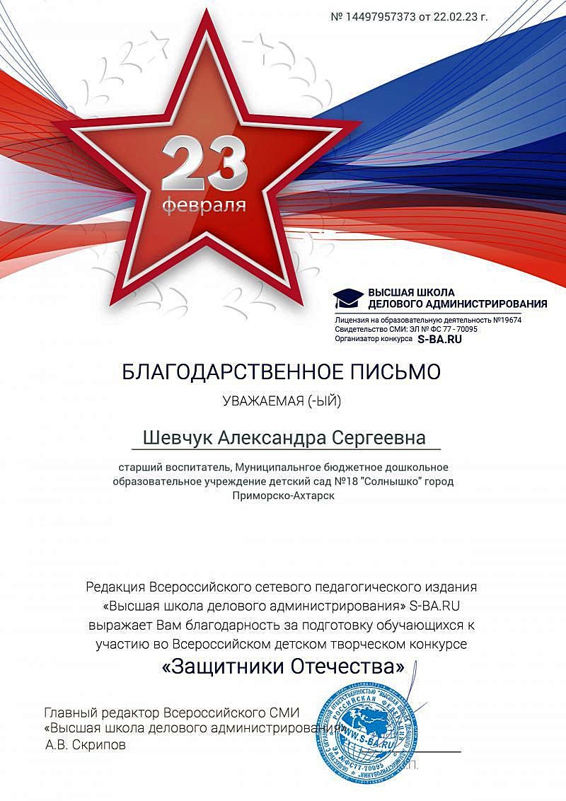Фамилия, имя, отчество: Шевчук Александра Сергеевна